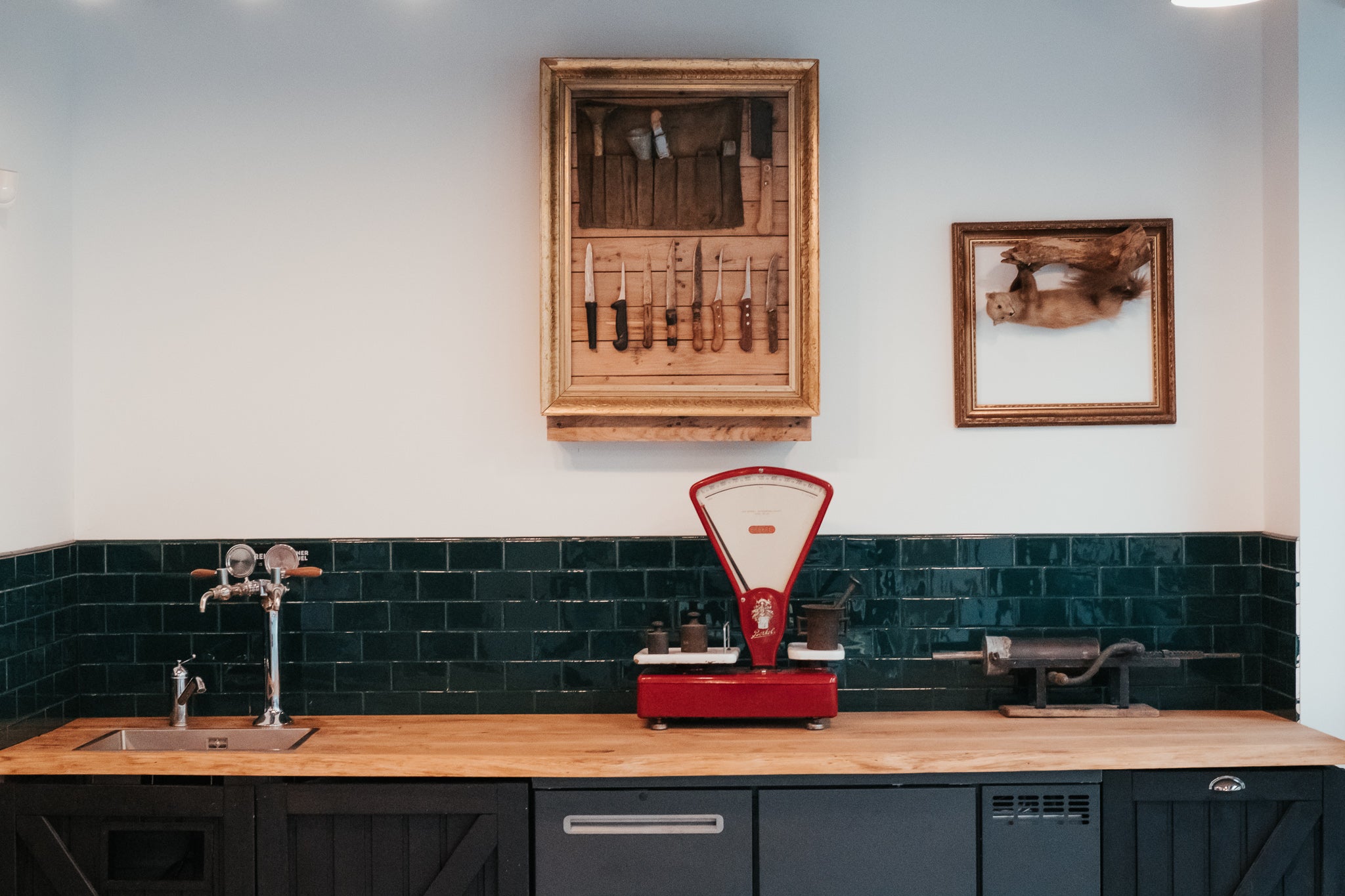 Dômyselná kuchyňa a kúpelňa.